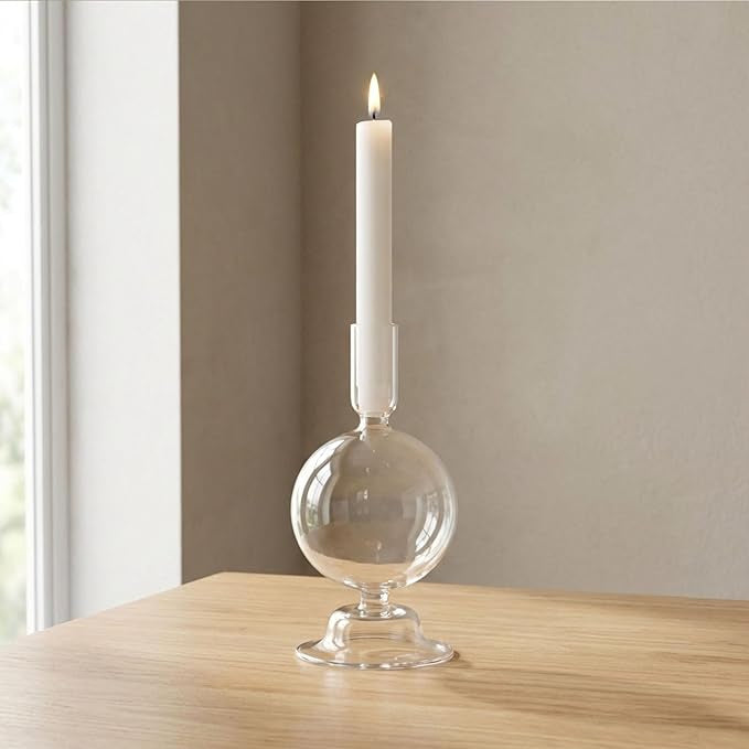 The 20117-05 7” Clear Glass Bubble Taper Candle Holder is constructed from high-quality glass, ensuring durability and a refined aesthetic.... The 20117-05 7” Clear Glass Bubble Taper Candle Holder is constructed from high-quality glass, ensuring durability and a refined aesthetic. Its design aligns with current trends such as Boho and Glam, enhancing any space by creating a warm, inviting atmosphere while securely holding taper candles. View more