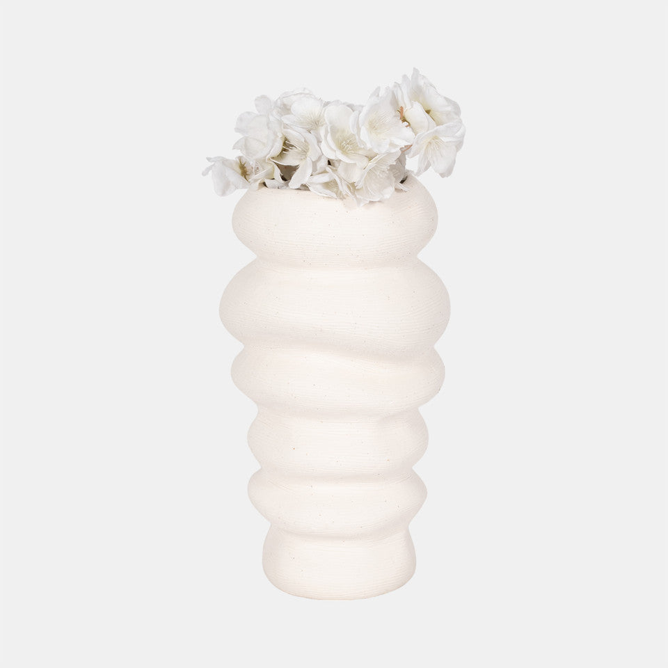 The White Hand Scribed Cairn Vase features a textured surface designed to enhance its aesthetic appeal. It provides a substantial... The White Hand Scribed Cairn Vase features a textured surface designed to enhance its aesthetic appeal. It provides a substantial presence for floral arrangements or as a standalone decor piece, contributing to an elegant environment.   View more