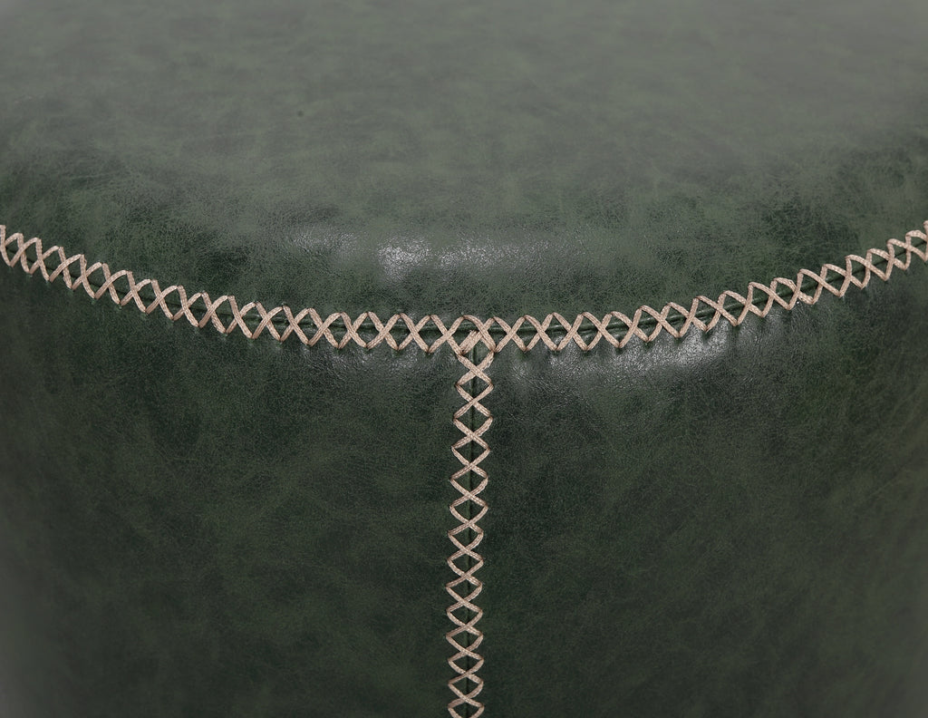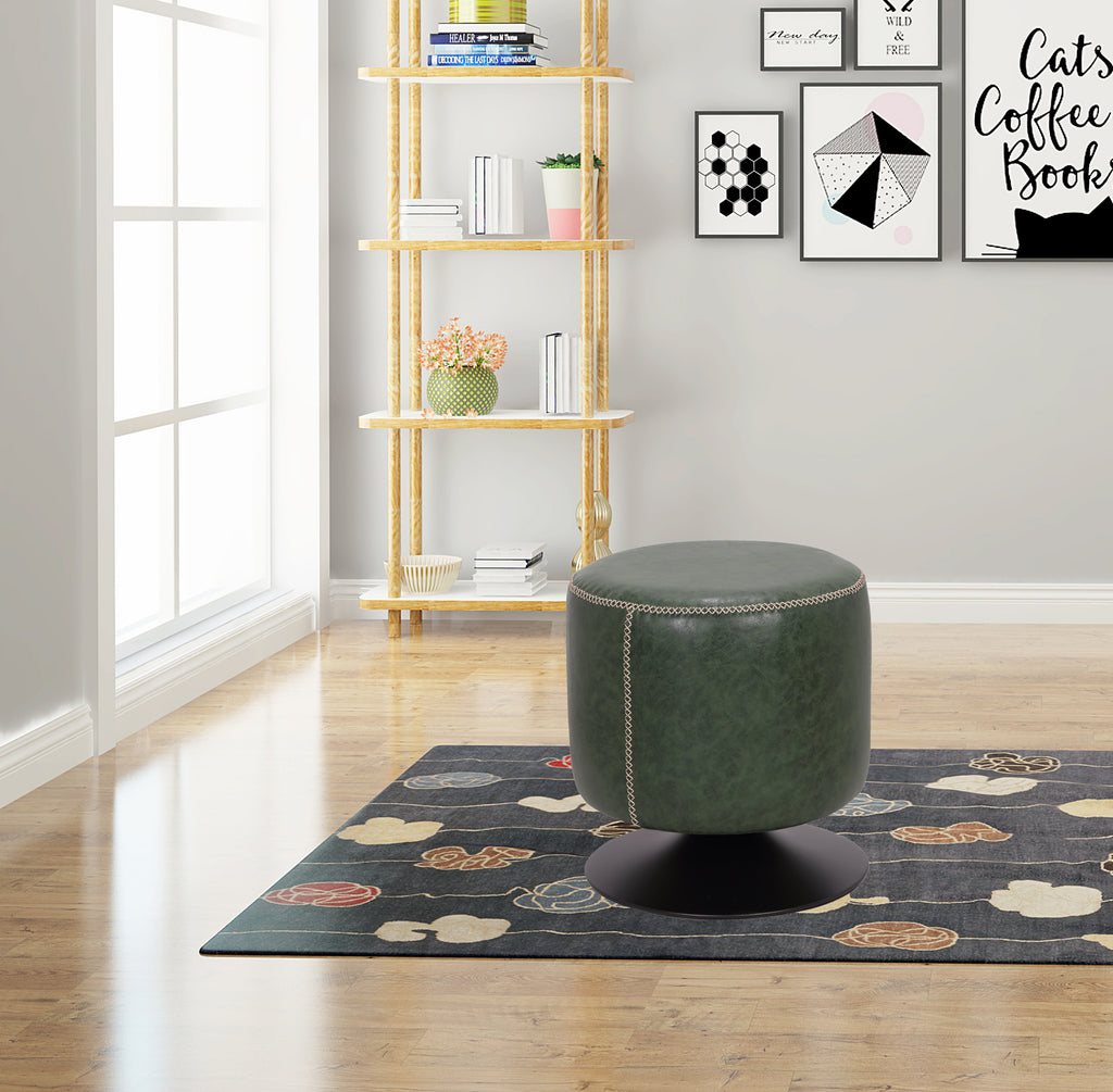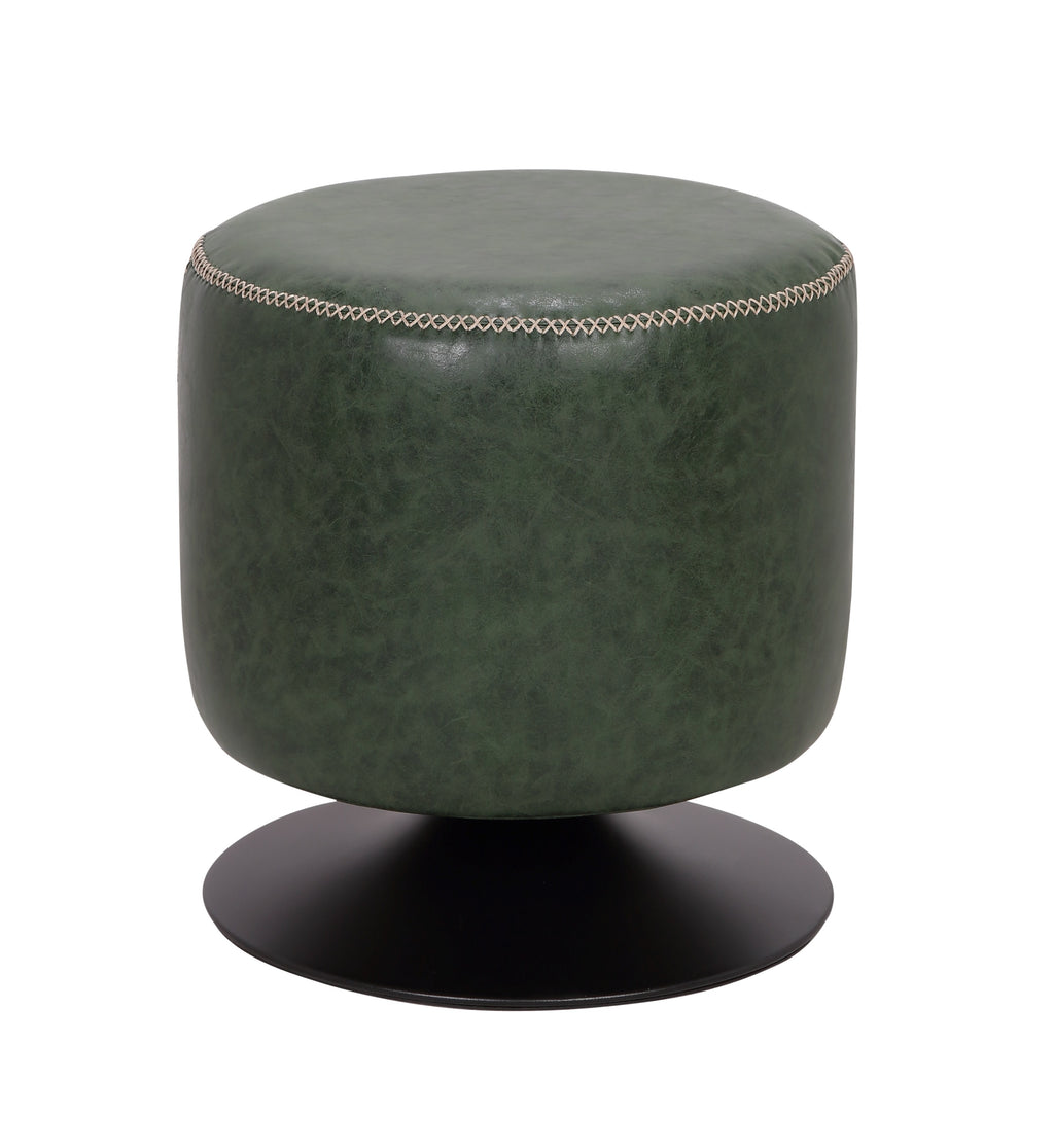 5035 Ottoman Round Vintage Upholstered Ottoman Upl: Vintage Green PU Finish