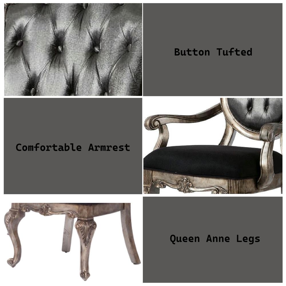 • BACK Trim: Top w/Scrolled Details & Crown, BACK Cushion: Silver Gray Silk-Like Fabric w/Button Tufted (Inside Back: Tufted / Outside Back: Plain)