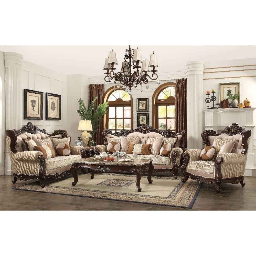 • Oversized Floral-Scrolled Carving Trim with Nailhead: Contrast Gold-Brush Accent (Solid Wood)