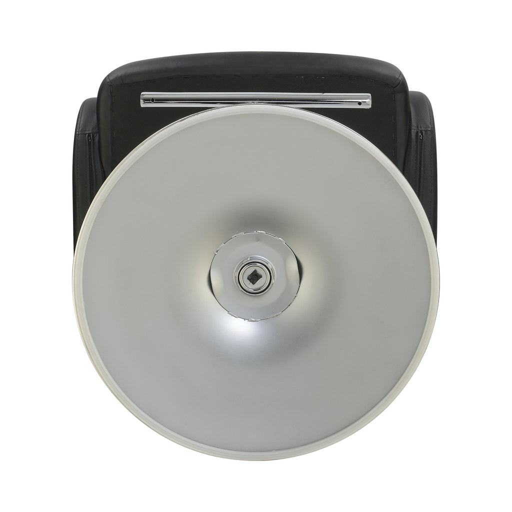 • Ergonomically positive seat, back, and arms encased in black upholstery match with virtually any palette