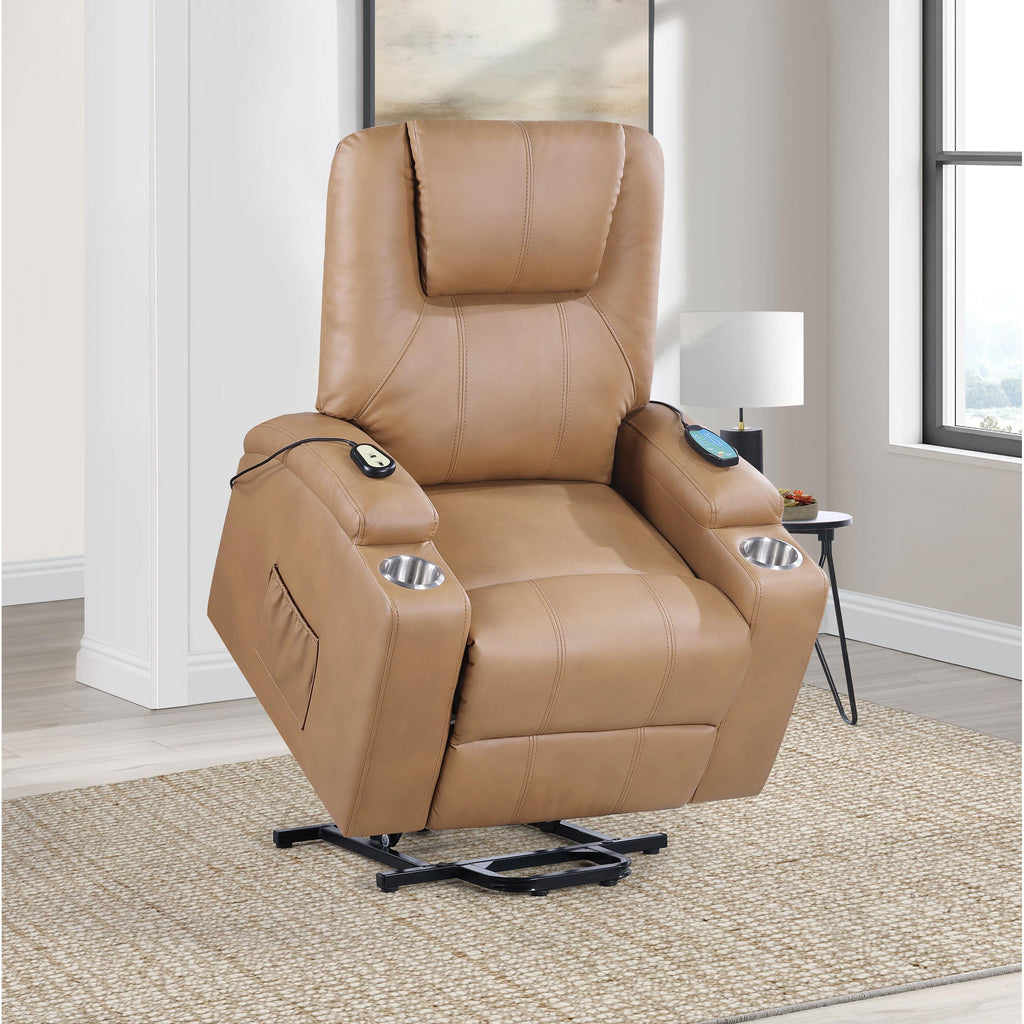 • Power lift mechanism aids with standing and sitting