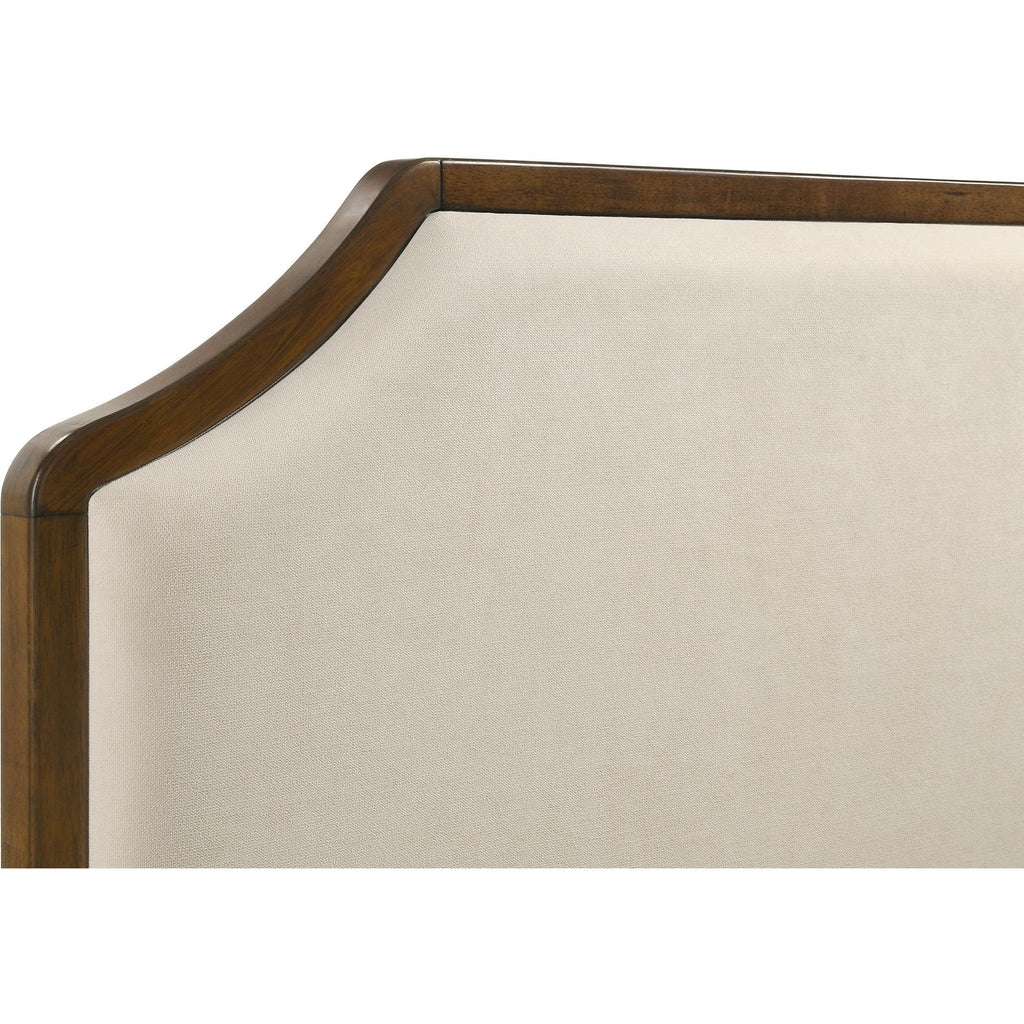 • Cream upholstered headboard offers soft texture and elegant tailored presence