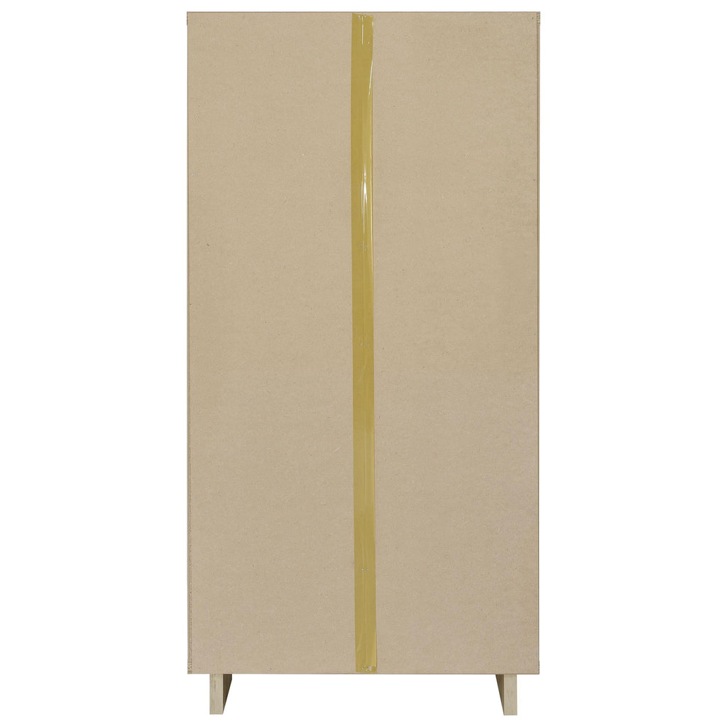 • Two-tone finish creates depth with a brown wood backing and legs and white sides and shelves