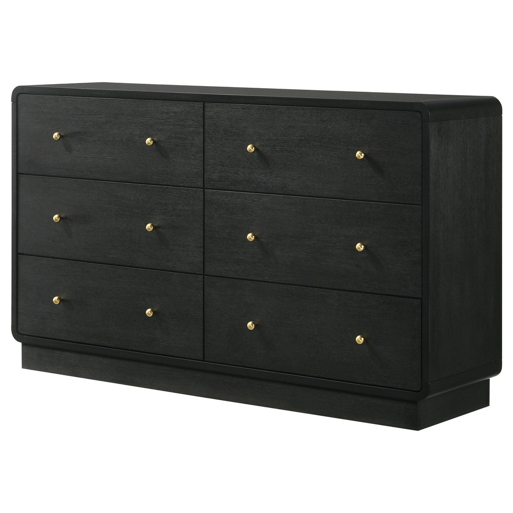 • A modern six-drawer dresser provides plentiful bedroom storage and stylish allure