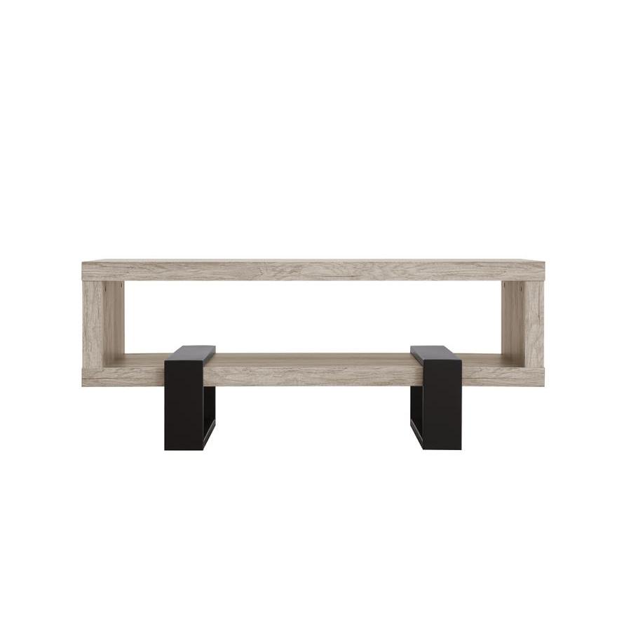• Rectangular coffee table with sleek grey driftwood finish and realistic wood grain details