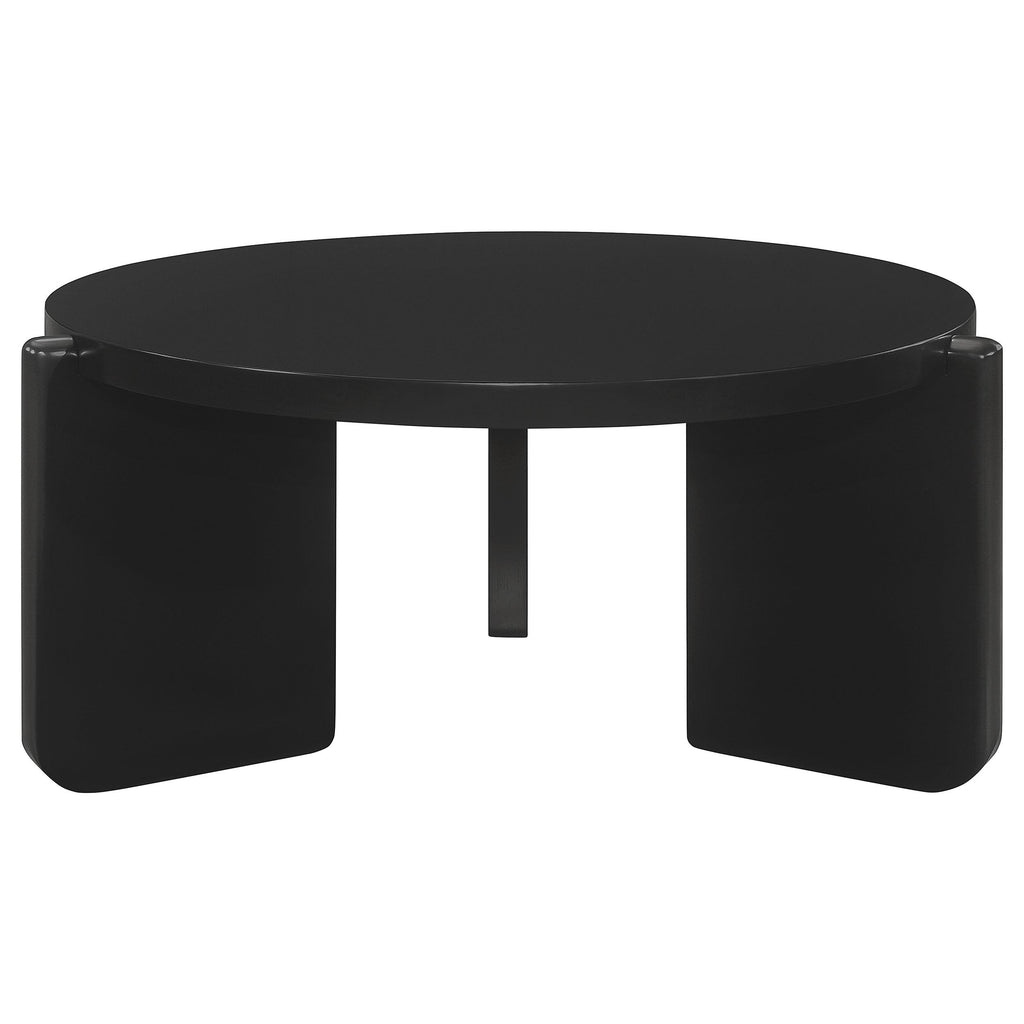• Round coffee table designed with a sleek, modern silhouette for a contemporary look