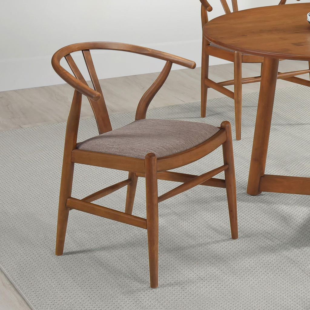 • Soft brown fabric upholstery dresses up chair cushions with a neutral color and textured feel