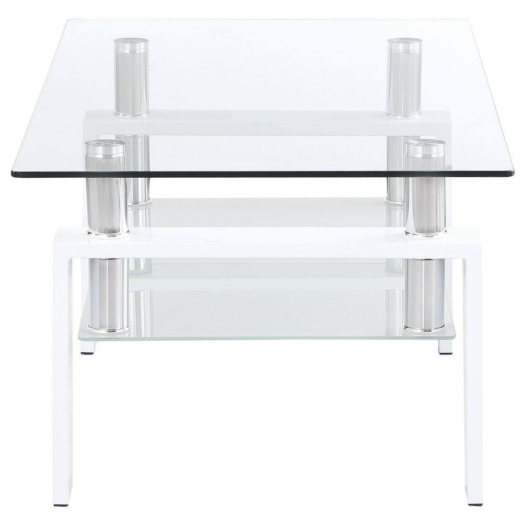 • Rectangular cocktail table with a sleek clear tempered glass top design