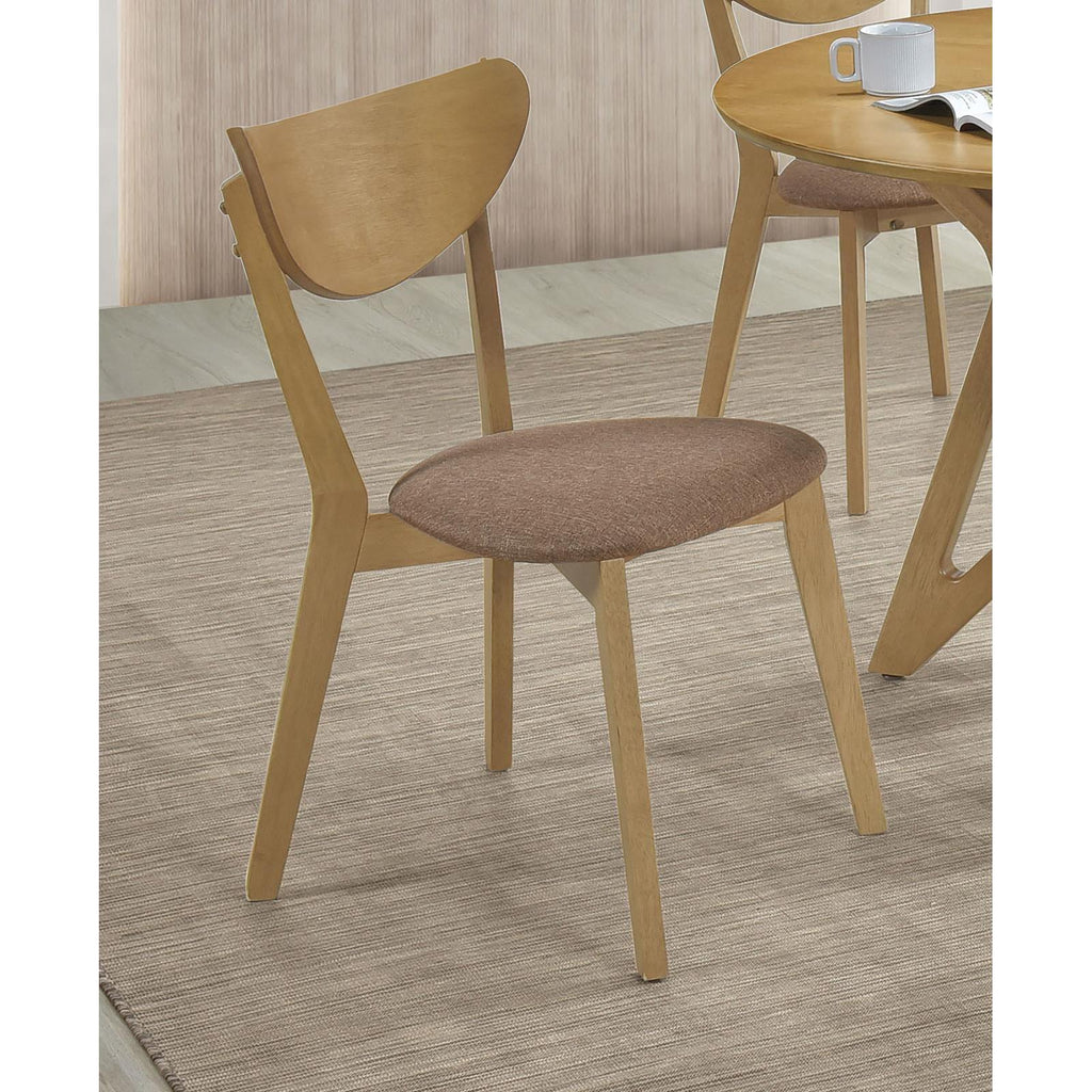 • Curved chair backs deliver comfortable seating as plump cushions with light brown upholstery blend in its palette