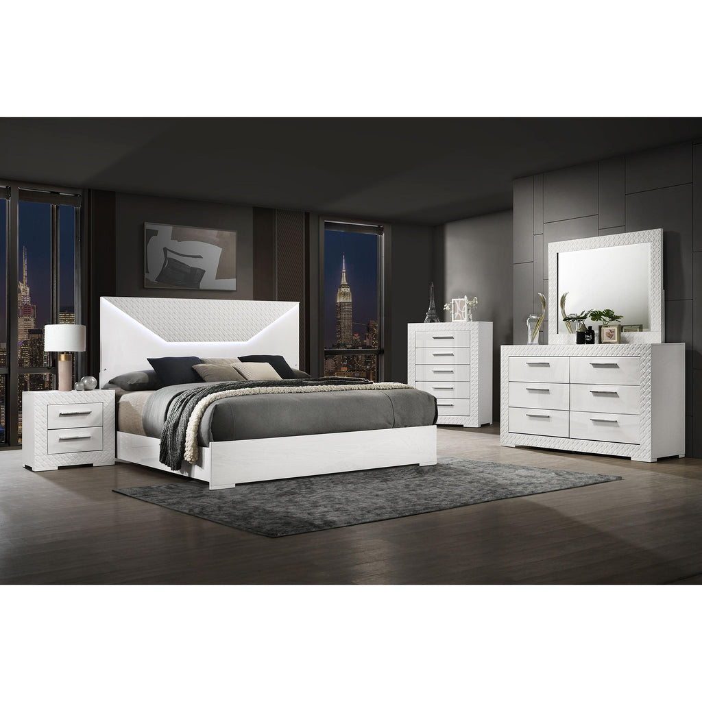 Coaster Furniture Ives 224941KE Eastern King Panel Bed LED Headboard - White High Gloss