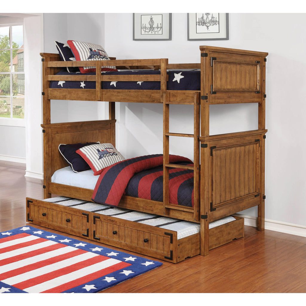 • Rustic honey finish complements mission-style decor and adds warmth to your space