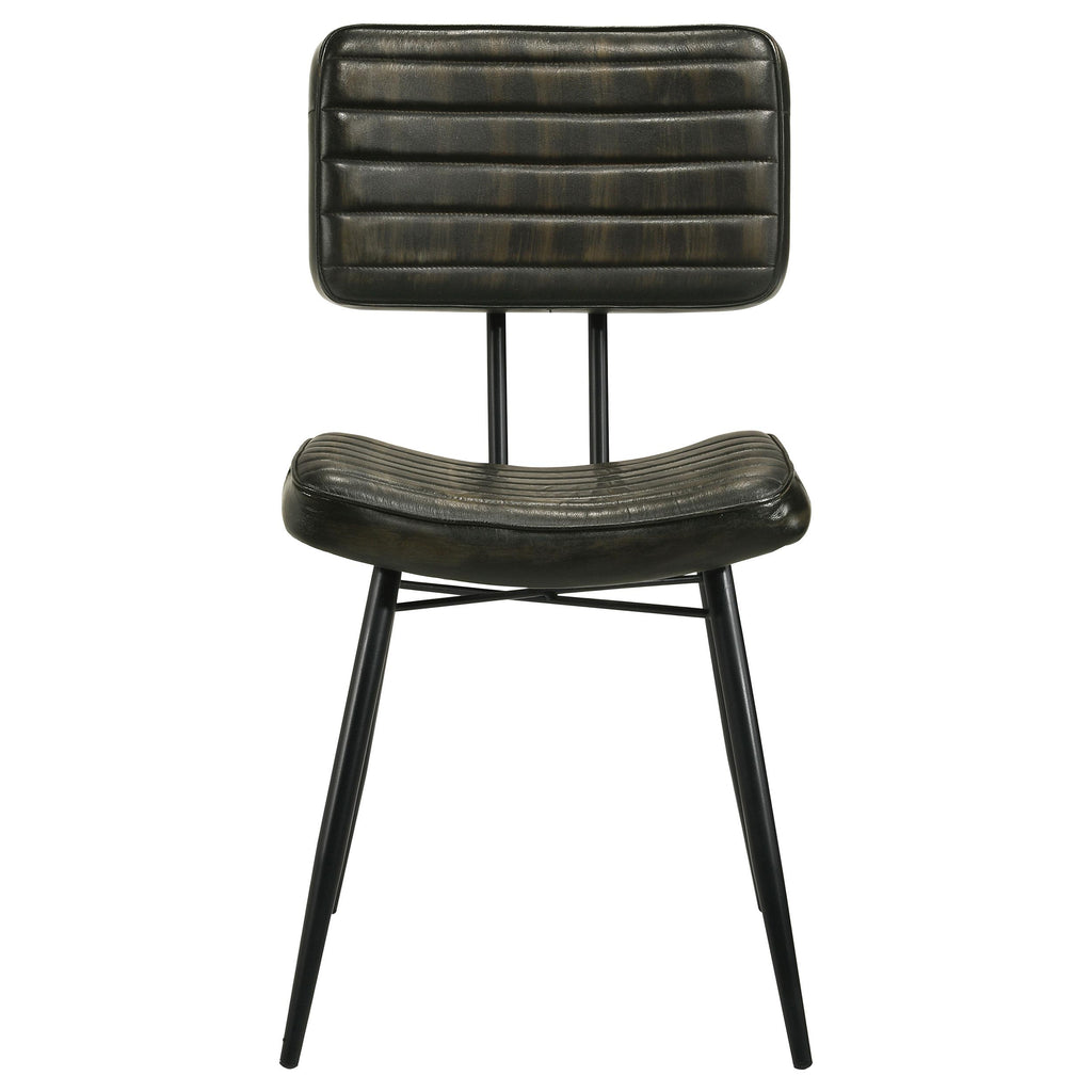 • Chair feature hand dyed goat leather with a retro charm that is irresistible. Also offered in a camel color