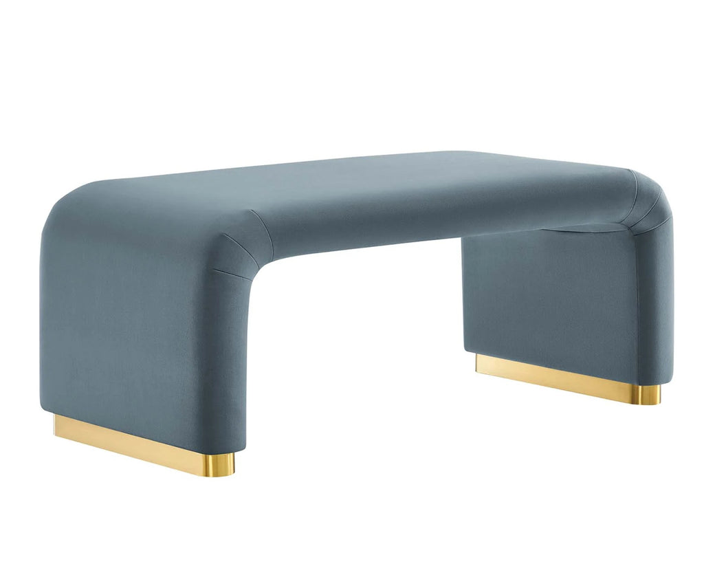EEI-6735-BRA-CAB-Velvet Waterfall Ottoman in Brass(Blue)
