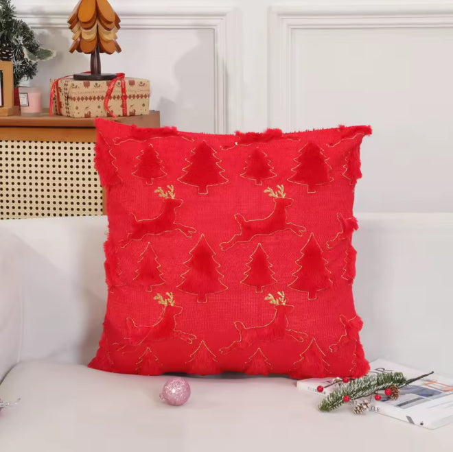 FURRY CHRISTMAS 18x18 PILLOW COVER- RED&GOLD