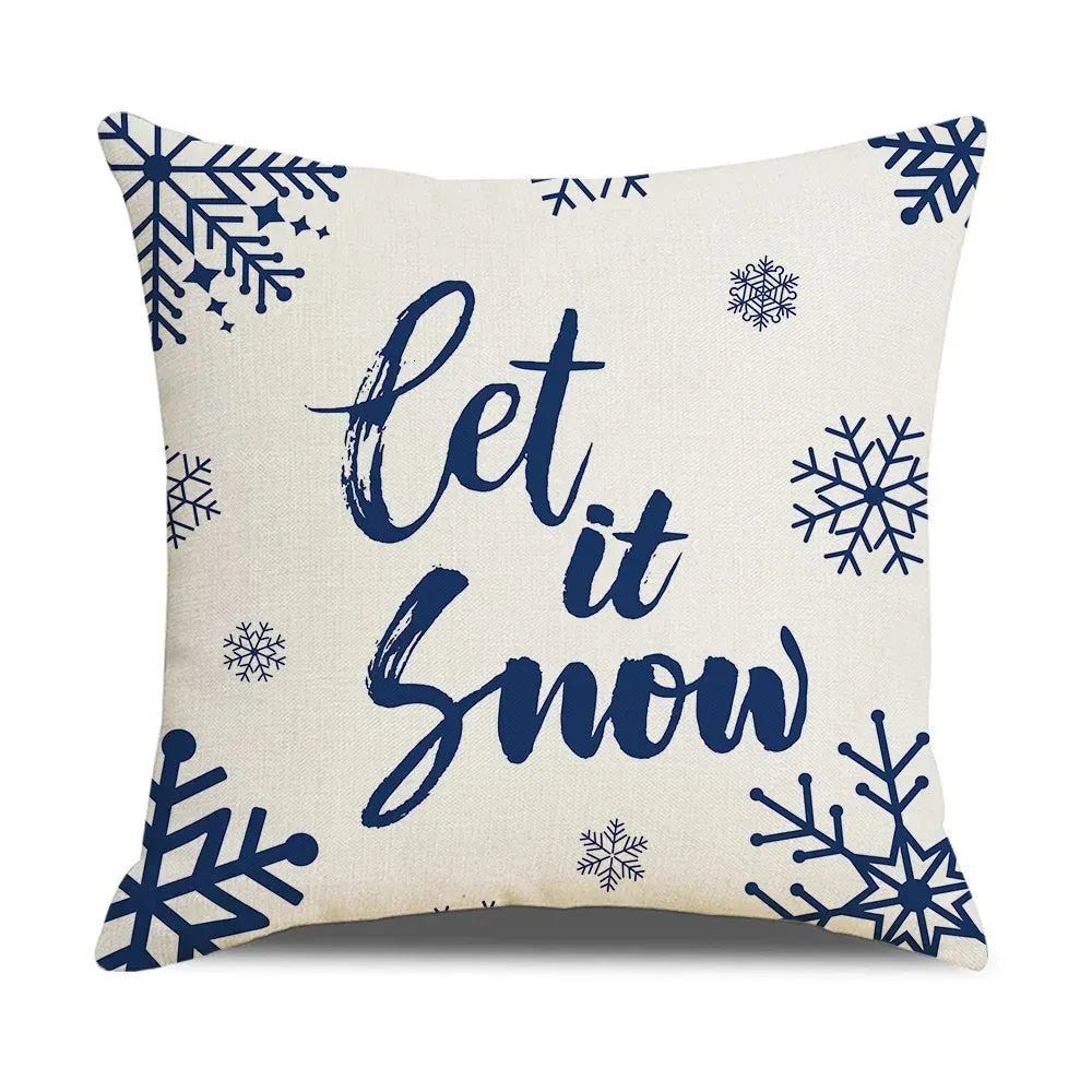 LET IT SNOW 18x18 PILLOW COVER- WHITE&BLUE