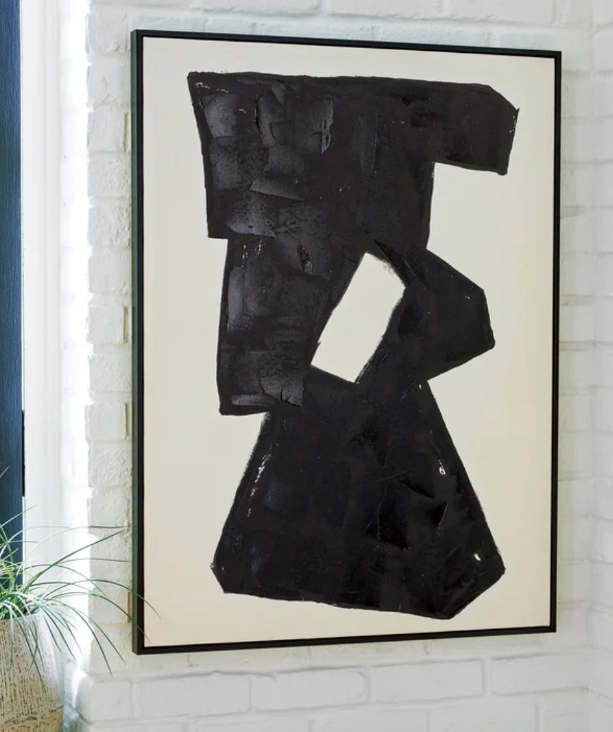 Elevate your wall décor with the A8000385 Black/Cream Wall Art, a striking modern piece that blends bold contrast with refined... Elevate your wall décor with the A8000385 Black/Cream Wall Art, a striking modern piece that blends bold contrast with refined simplicity. Featuring an abstract design in rich black tones against a soft cream backdrop, this artwork adds depth, texture, and contemporary elegance to any room. Perfect for living rooms, bedrooms, or entry spaces, it serves as a sophisticated focal point that enhances a wide range of décor styles. View more