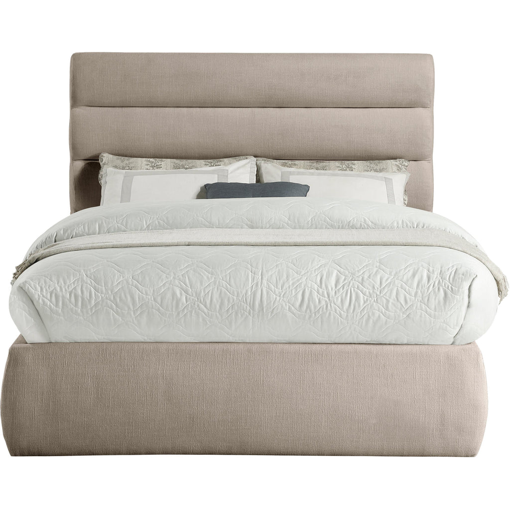 Meridian Adam Beige Linen Textured Fabric Queen Bed