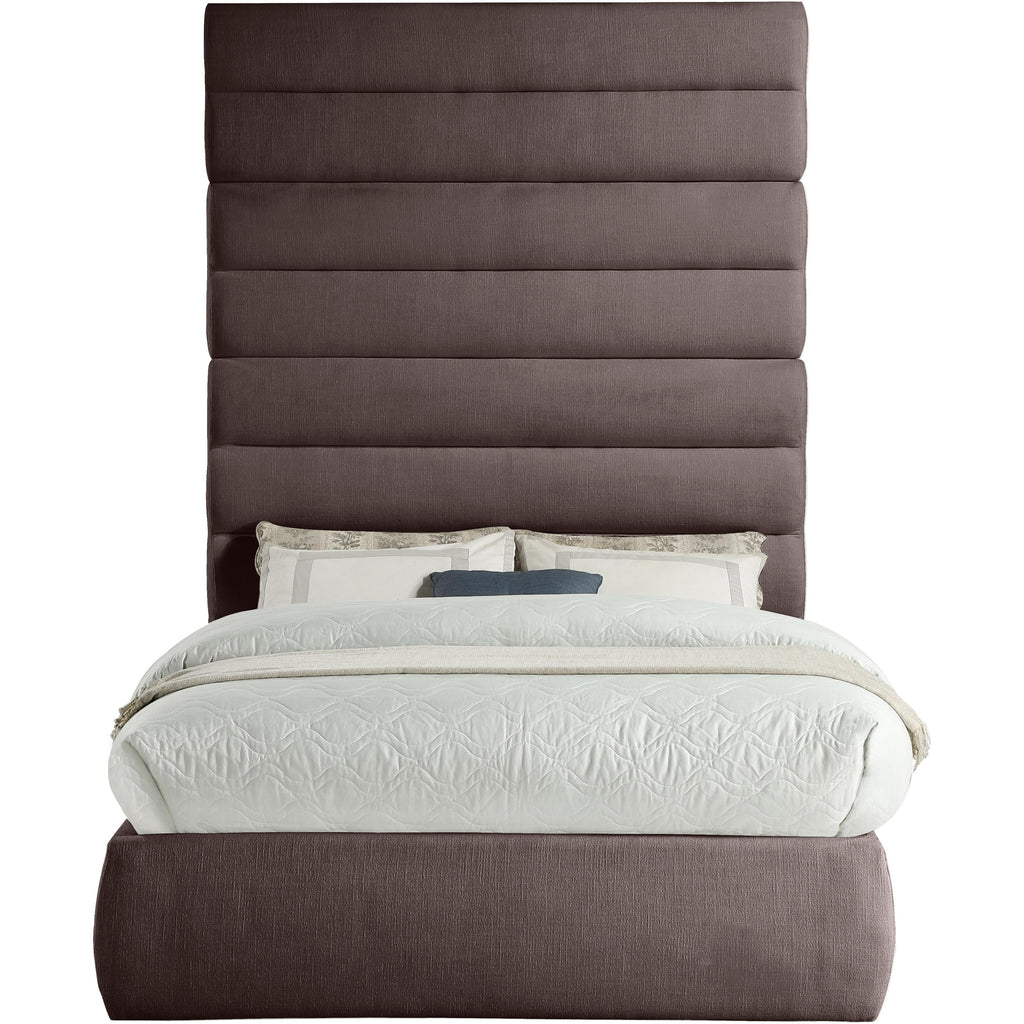 Meridian Adam Brown Linen Textured Fabric Queen Bed