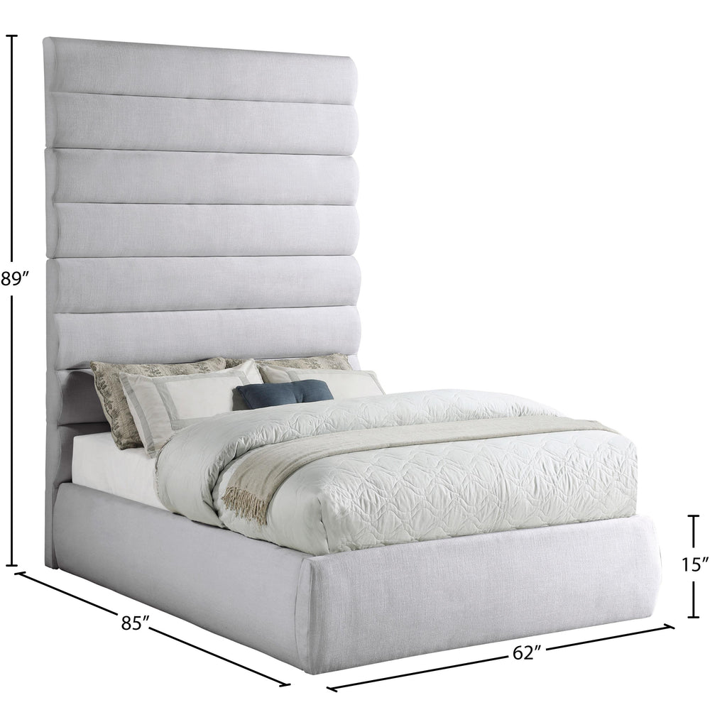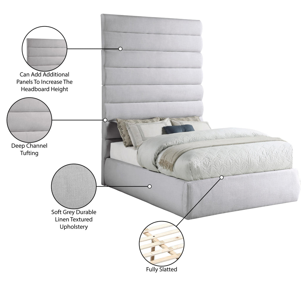 Meridian Adam Grey Linen Textured Fabric Queen Bed