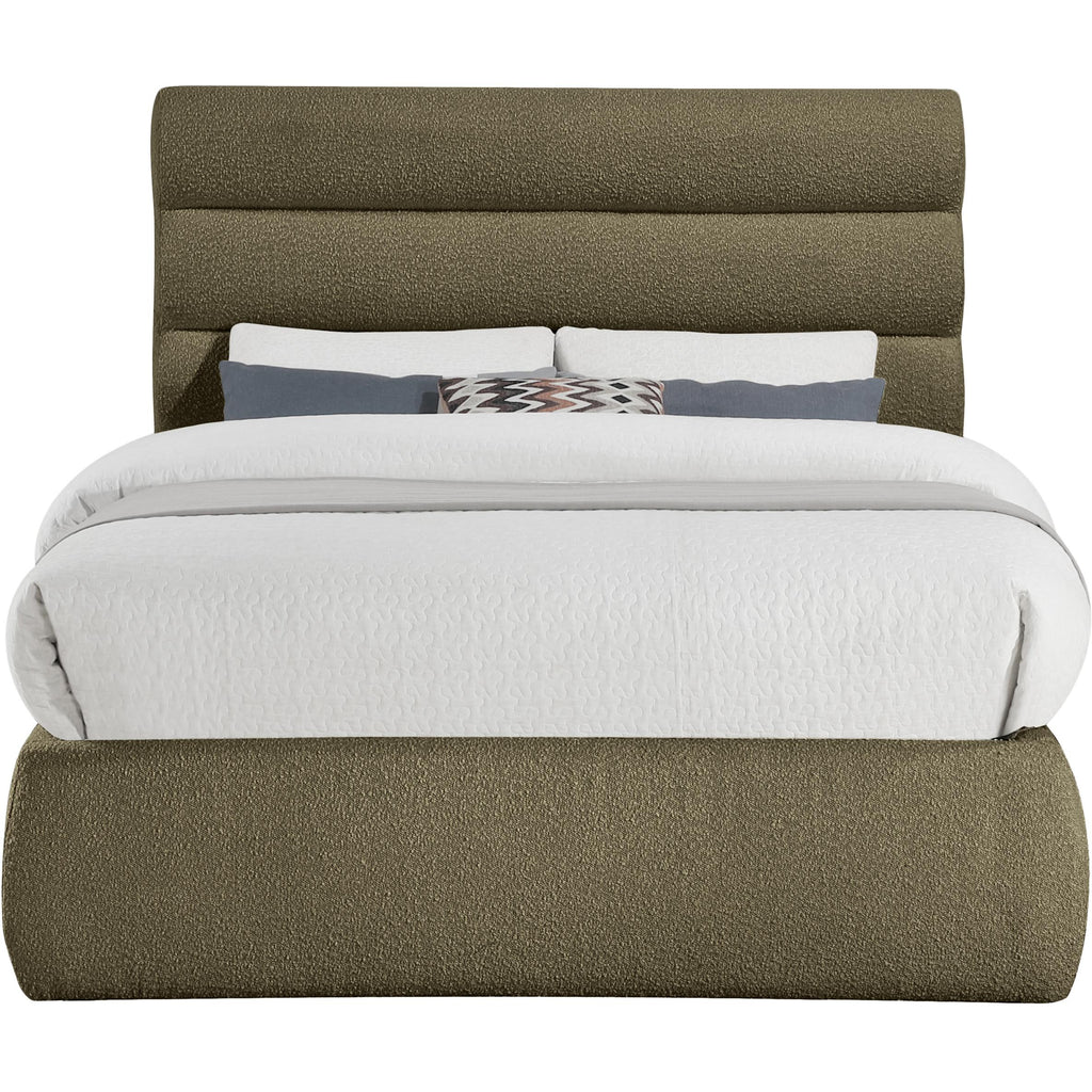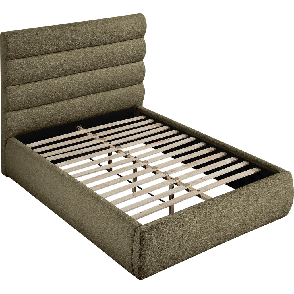 Meridian Adam Olive Boucle Fabric Queen Bed