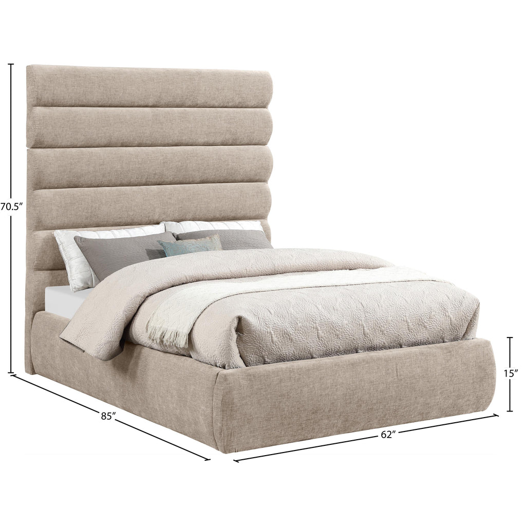Meridian Adam Beige Chenille Fabric Queen Bed