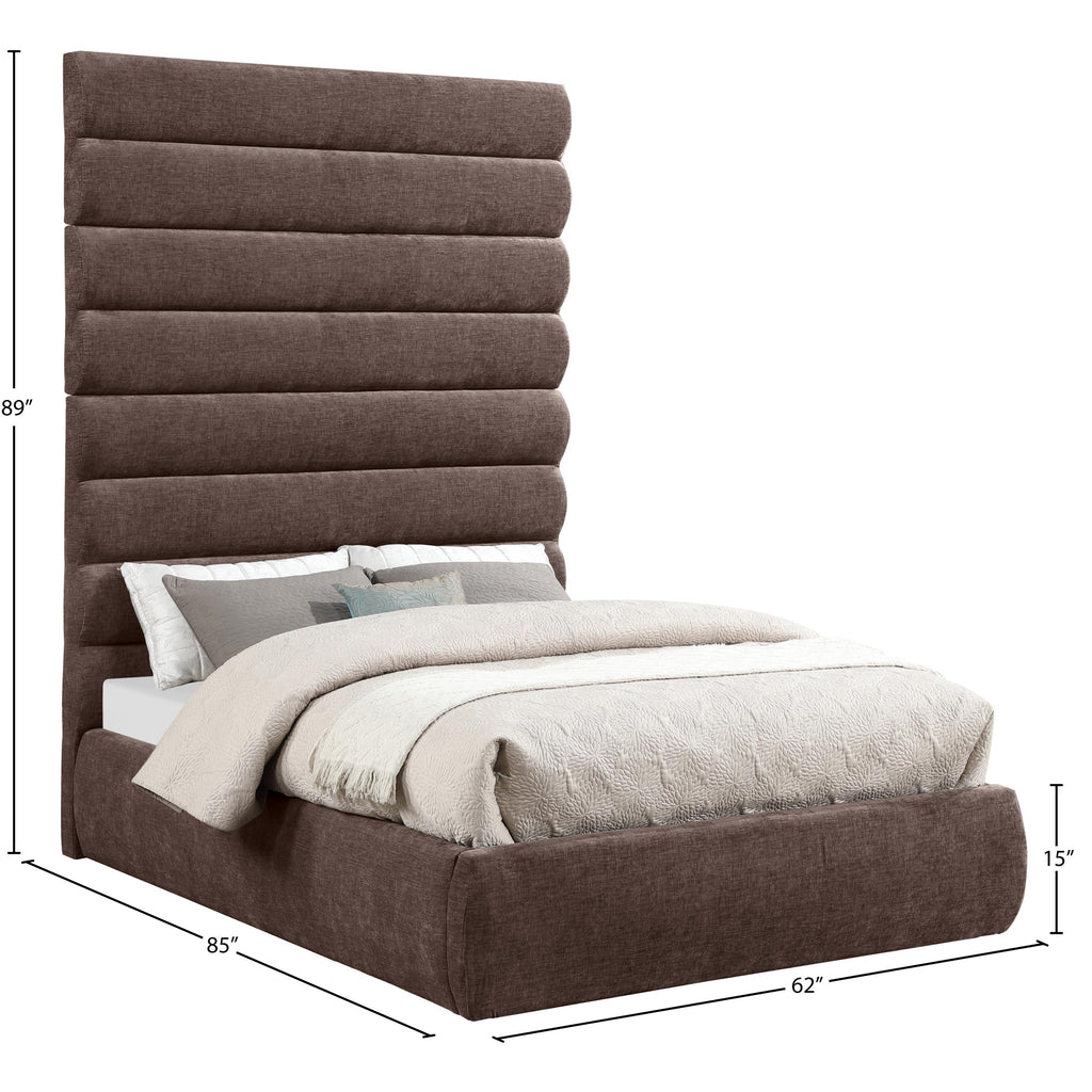 Meridian Adam Brown Chenille Fabric Queen Bed