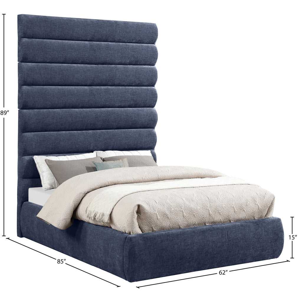 Meridian Adam Navy Chenille Fabric Queen Bed