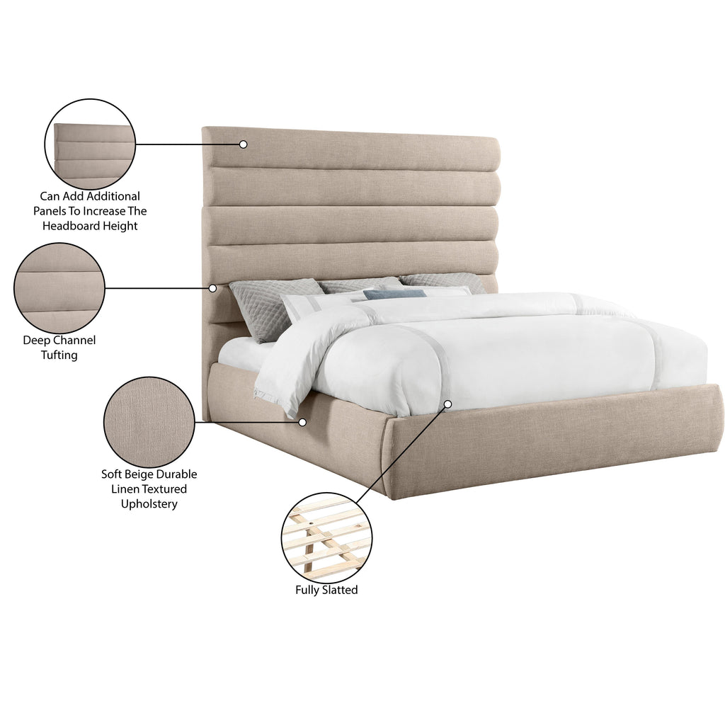 Meridian Adam Beige Linen Textured Fabric King Bed