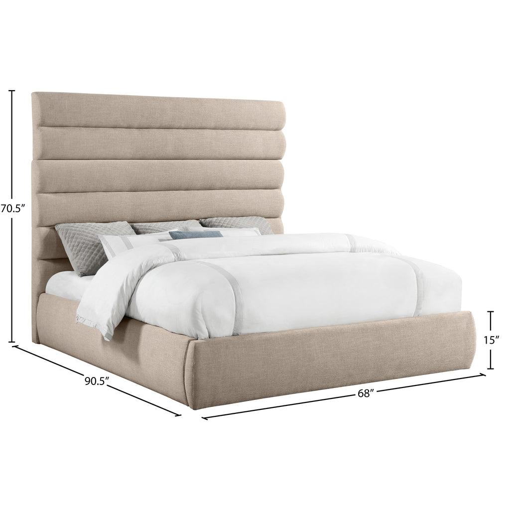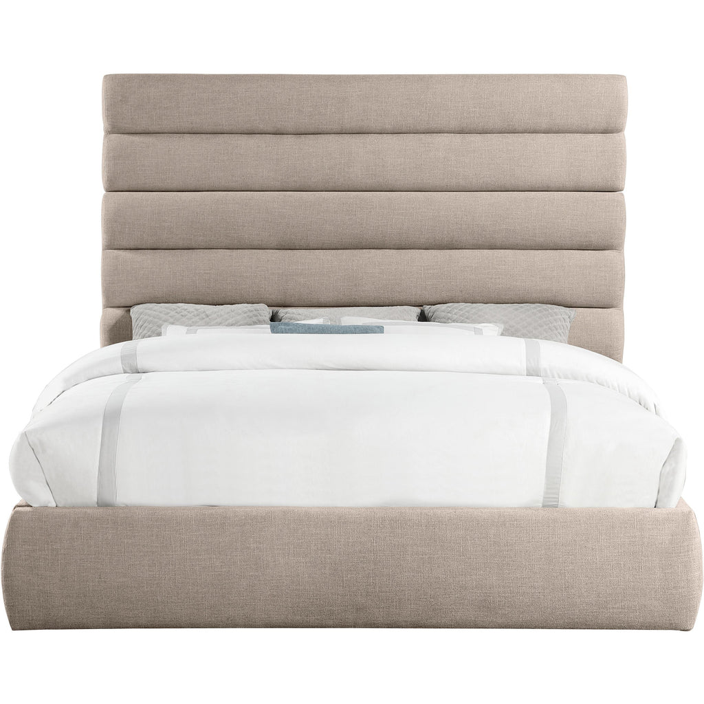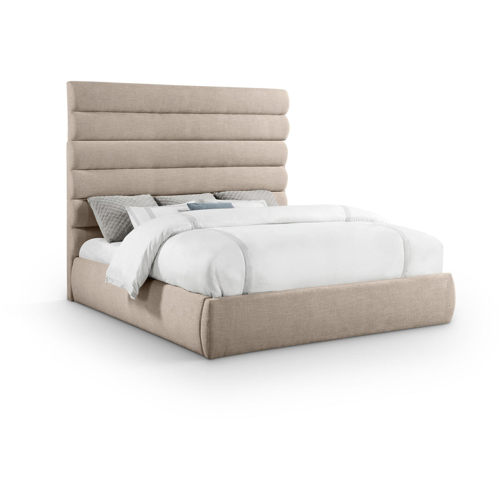 Meridian Adam Beige Linen Textured Fabric Queen Bed