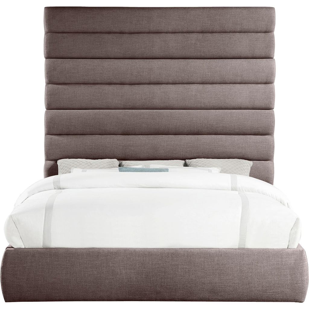 Meridian Adam Brown Linen Textured Fabric Queen Bed