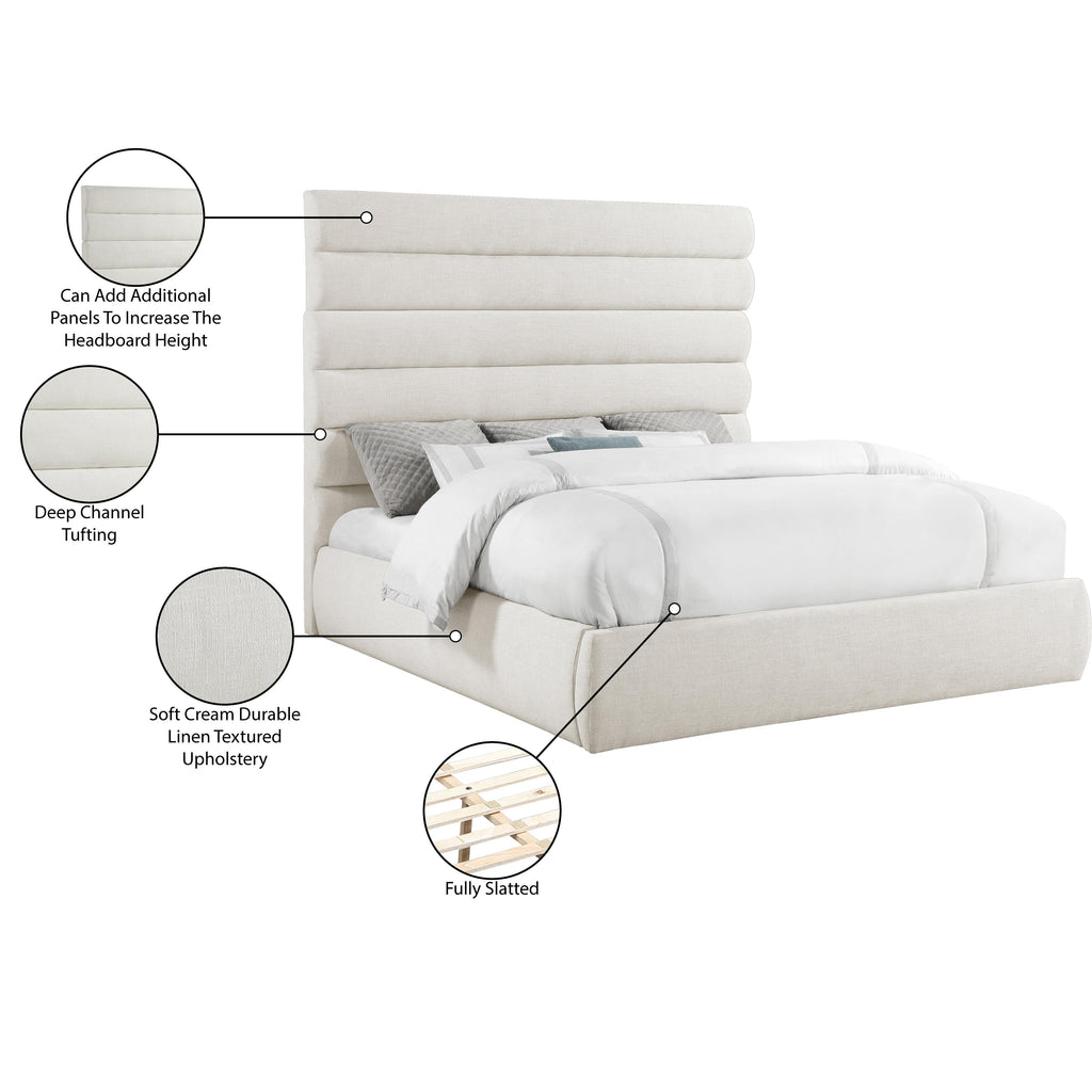 Meridian Adam Cream Linen Textured Fabric Queen Bed