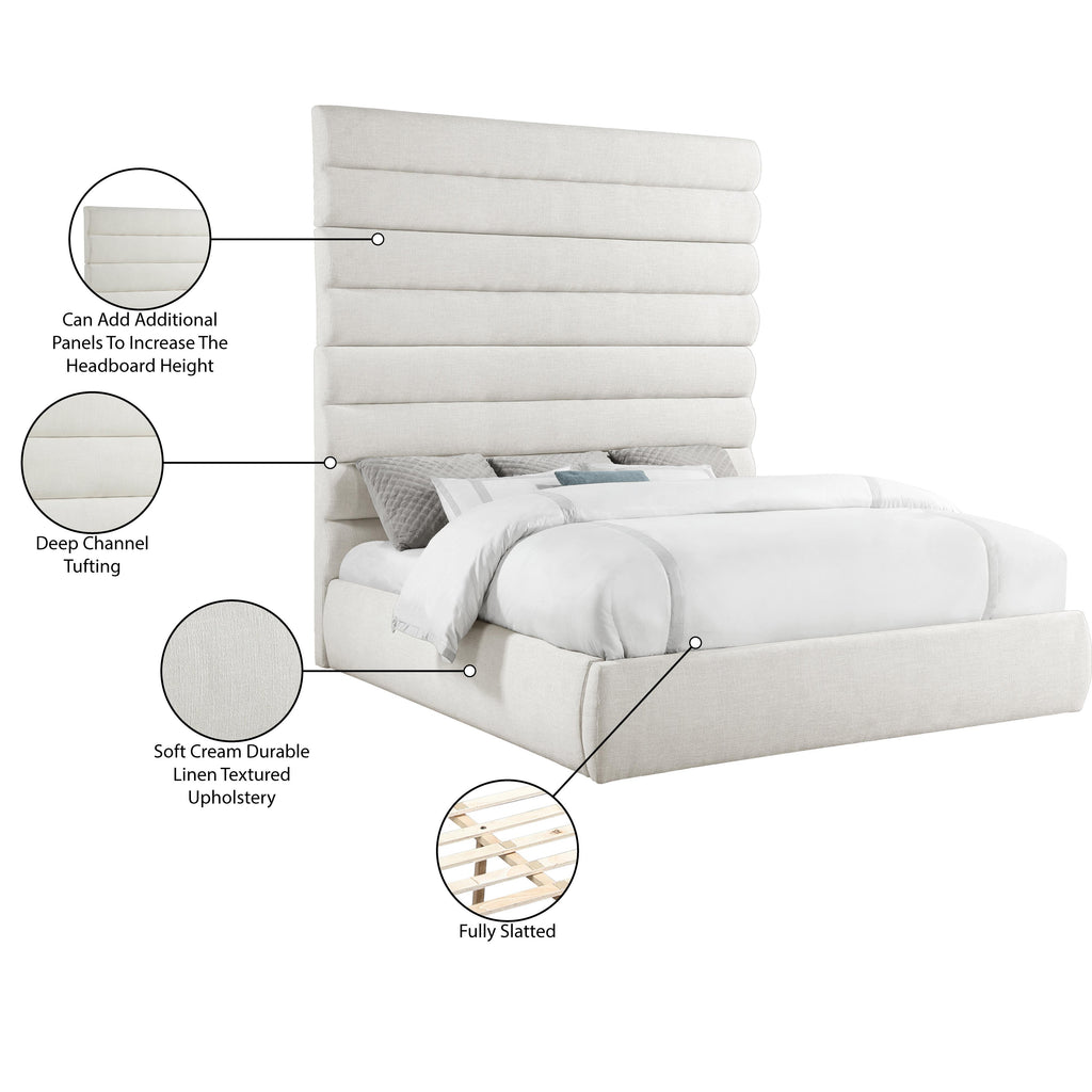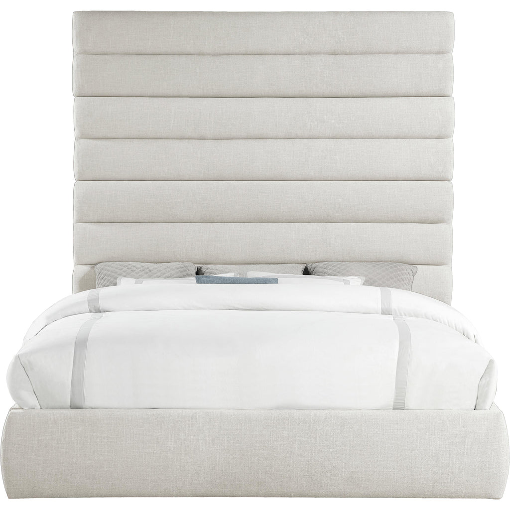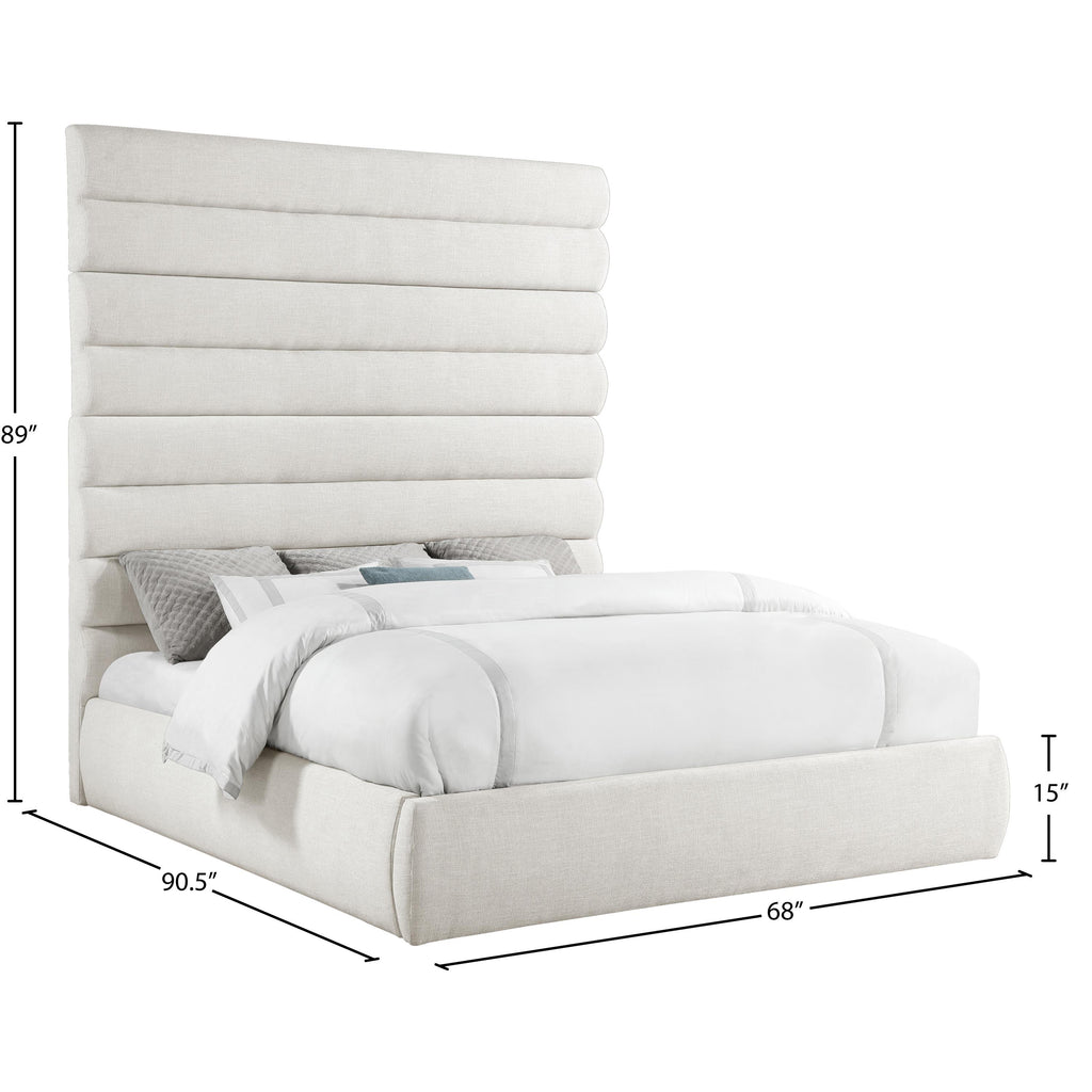 Meridian Adam Cream Linen Textured Fabric Queen Bed