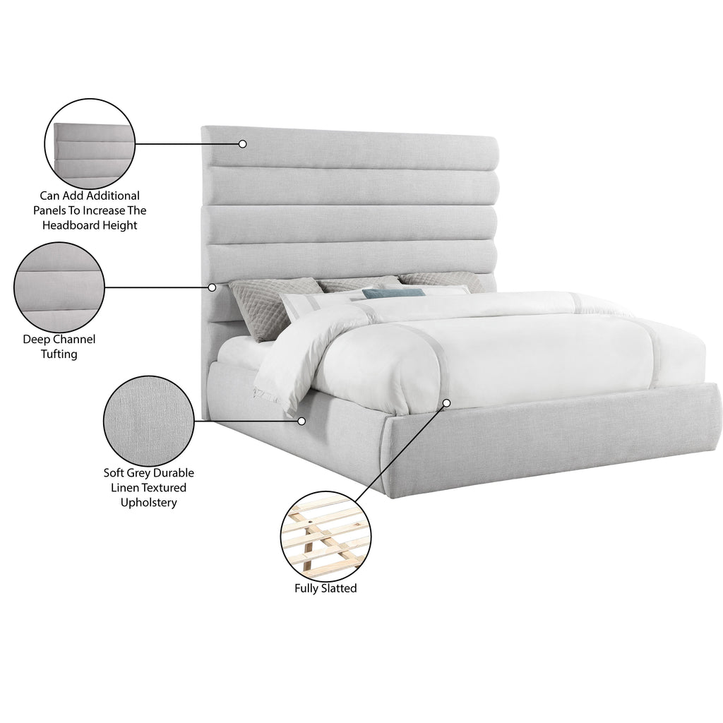 Meridian Adam Grey Linen Textured Fabric King Bed