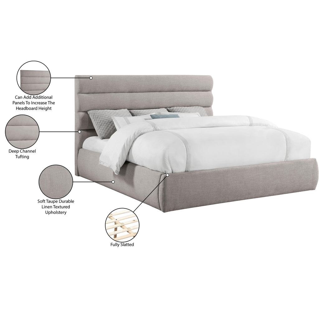 Meridian Adam Taupe Linen Textured Fabric King Bed
