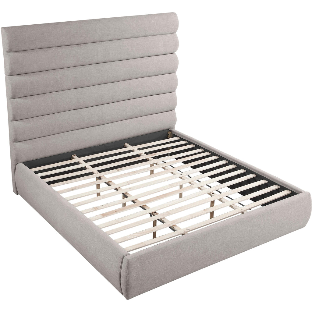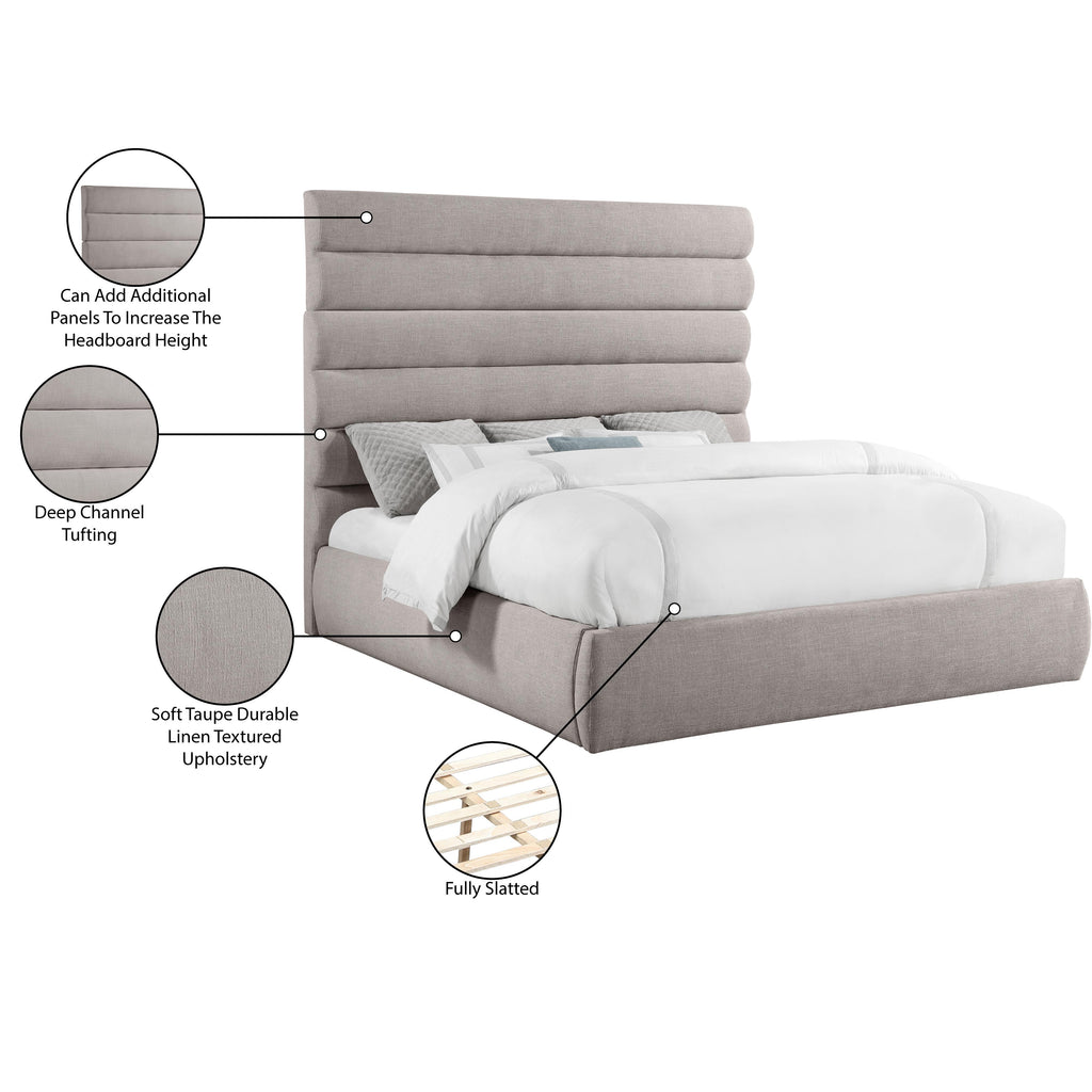 Meridian Adam Taupe Linen Textured Fabric King Bed