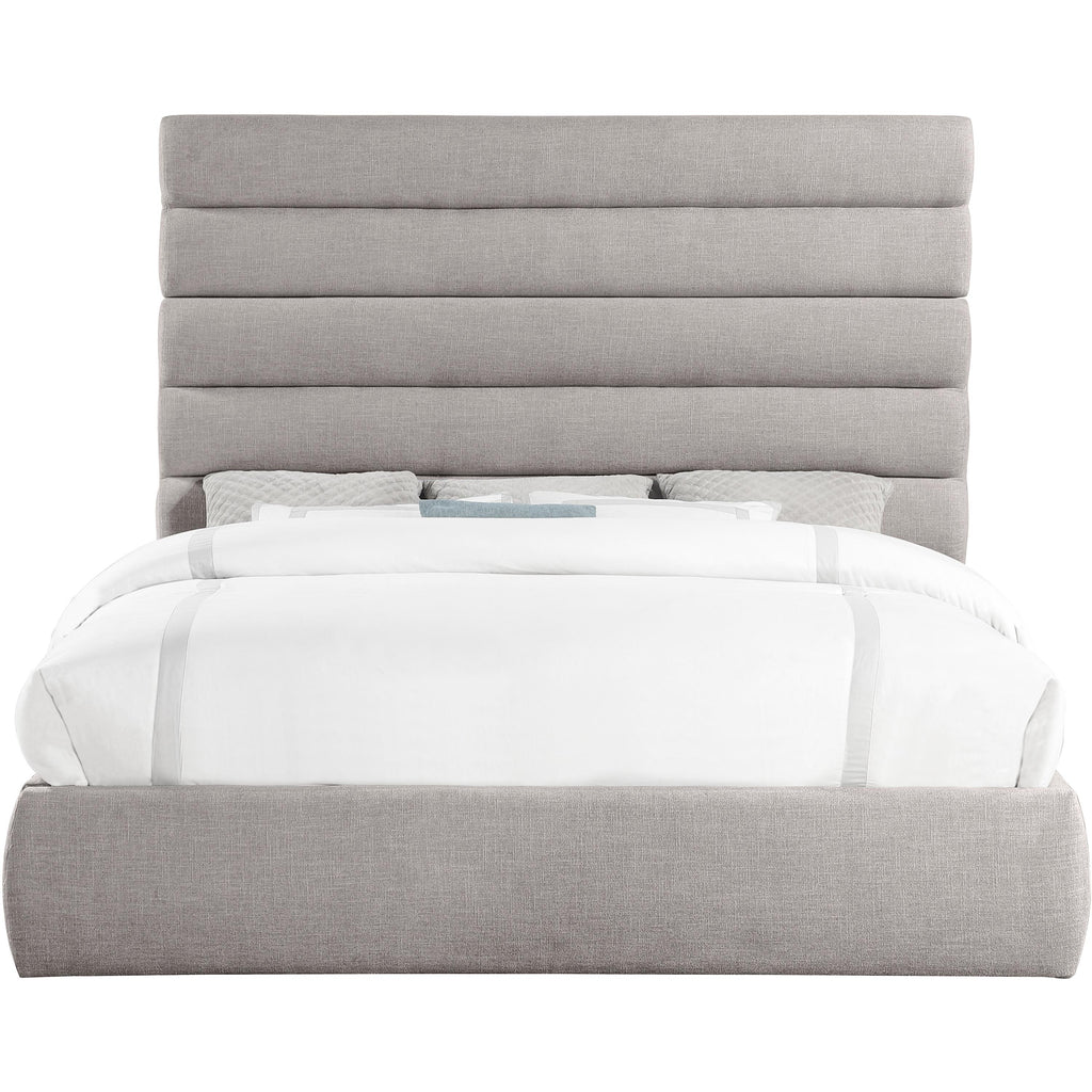 Meridian Adam Taupe Linen Textured Fabric Queen Bed