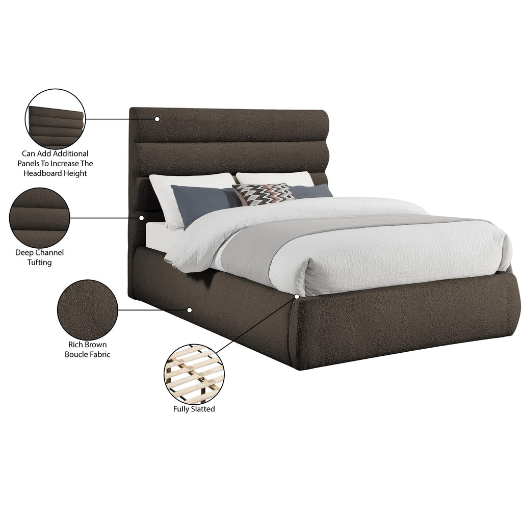 Meridian Adam Brown Boucle Fabric Queen Bed