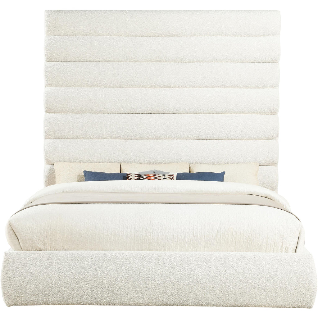 Meridian Adam Cream Boucle Fabric Queen Bed