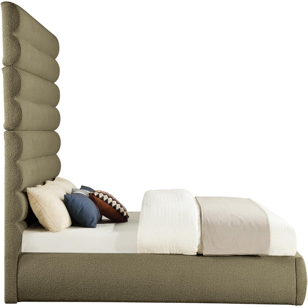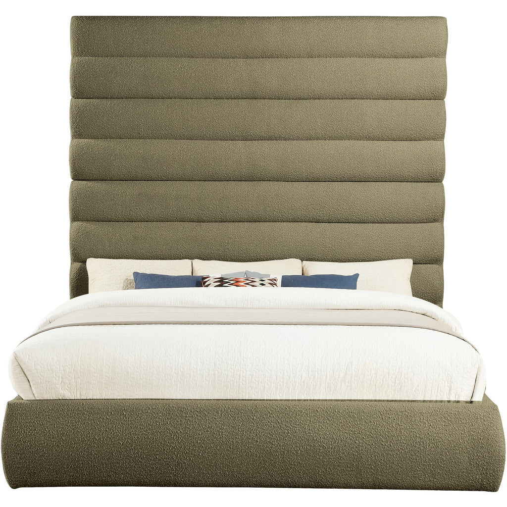 Meridian Adam Olive Boucle Fabric Queen Bed
