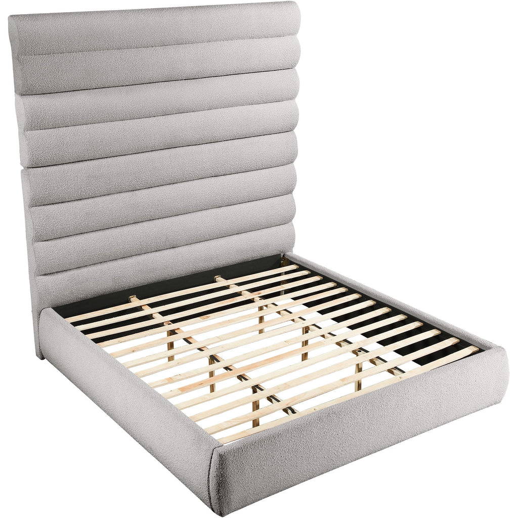 Meridian Adam Taupe Boucle Fabric Queen Bed