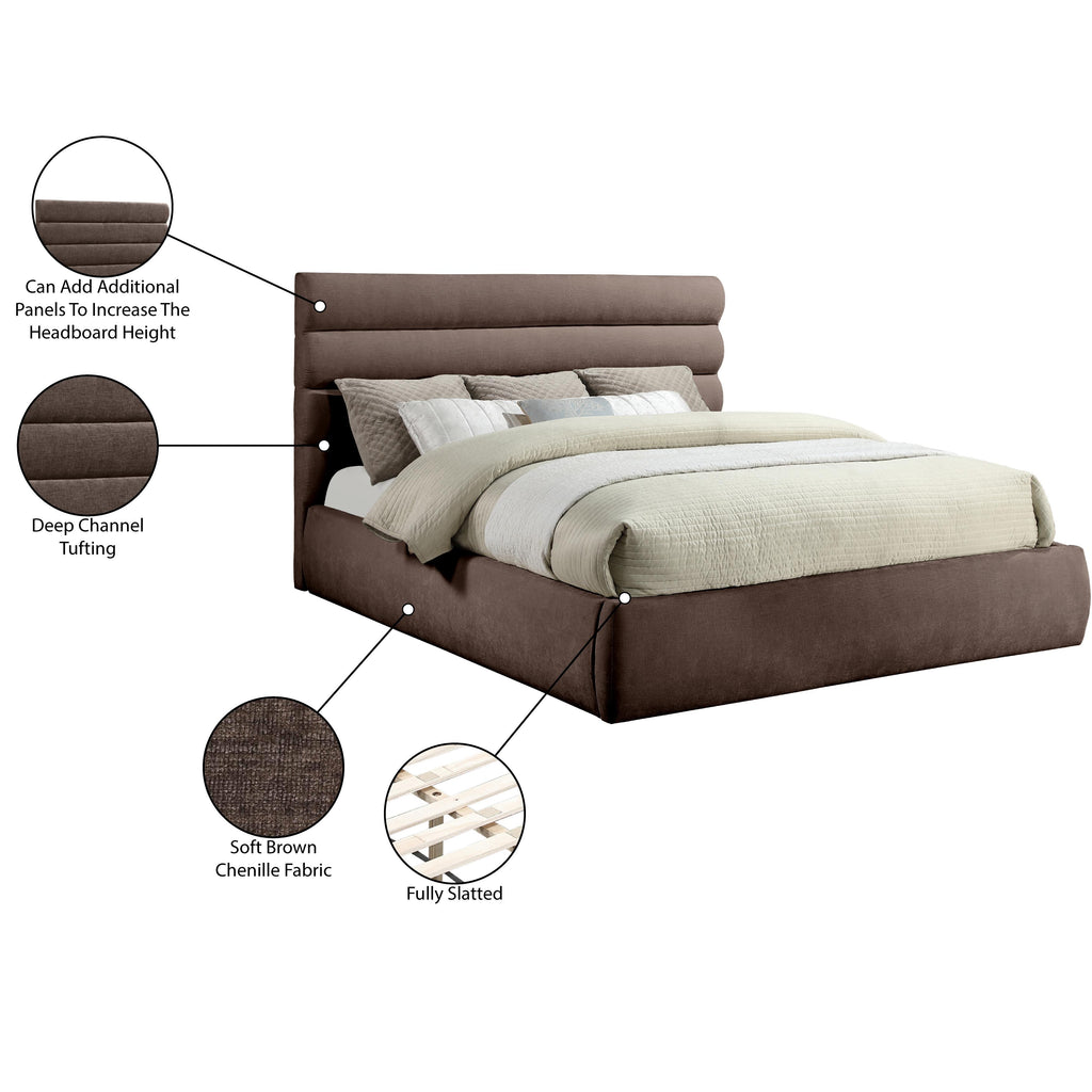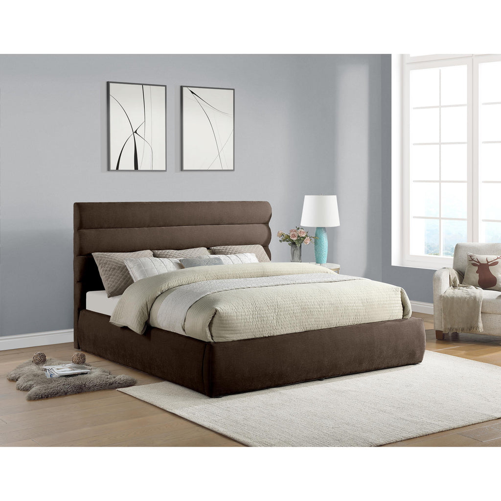 Meridian Adam Brown Chenille Fabric Queen Bed
