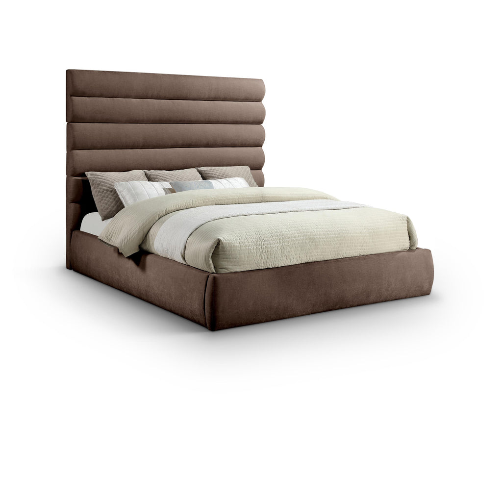 Meridian Adam Brown Chenille Fabric Queen Bed