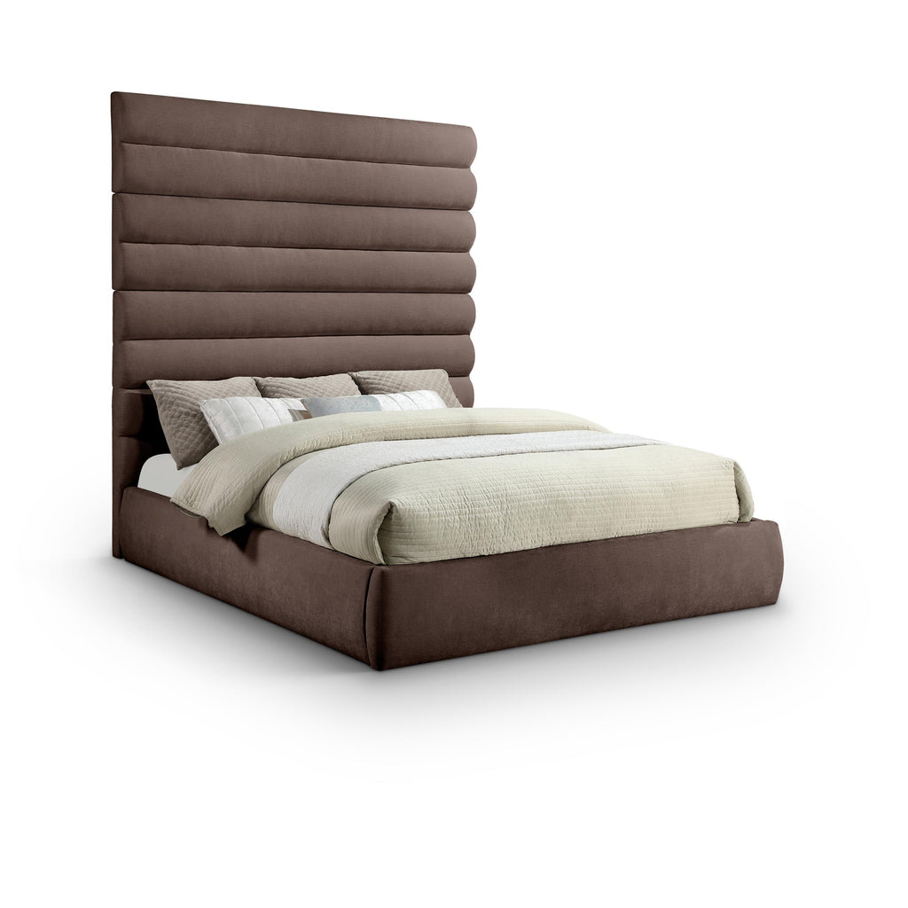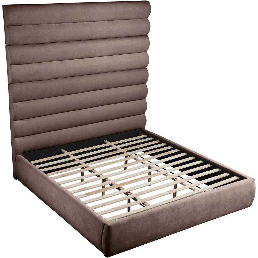 Meridian Adam Brown Chenille Fabric Queen Bed