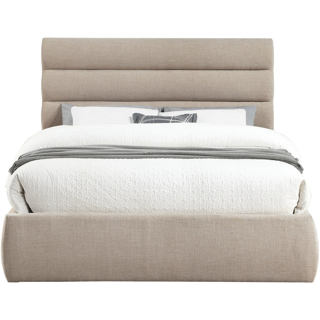 Meridian Adam Beige Linen Textured Fabric Queen Bed