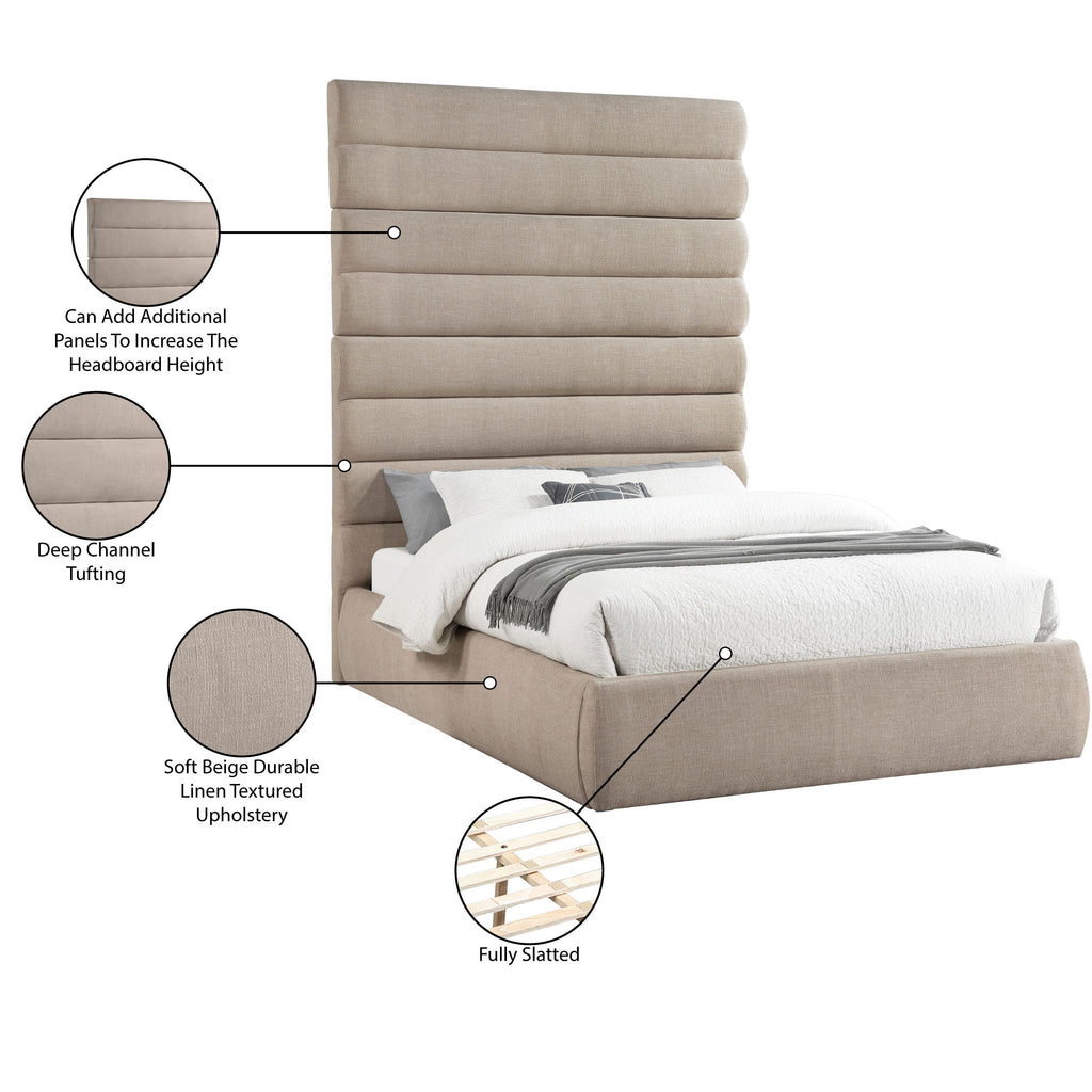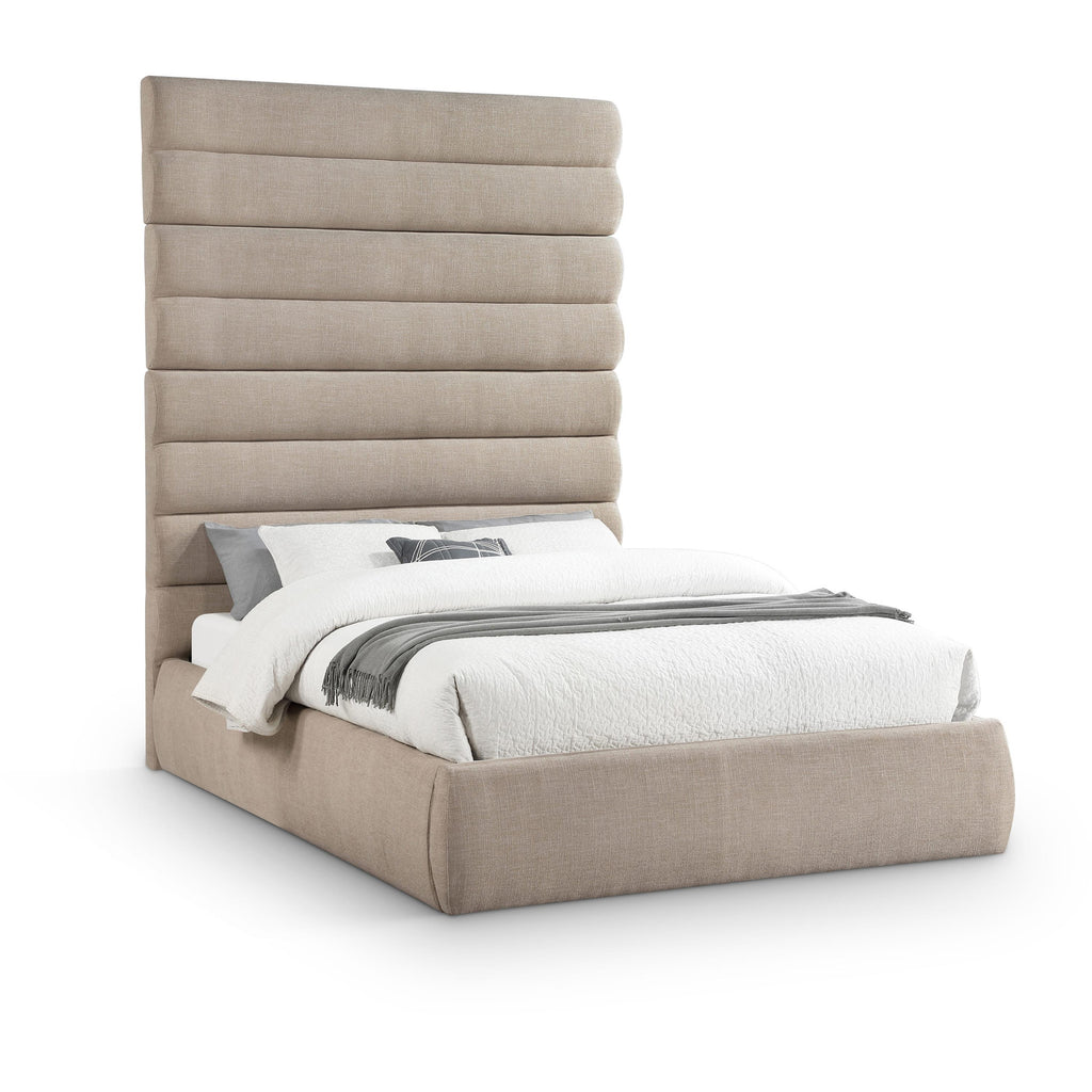 Meridian Adam Beige Linen Textured Fabric Queen Bed