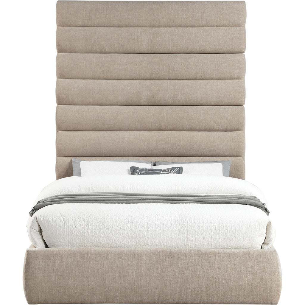 Meridian Adam Beige Linen Textured Fabric Full Bed
