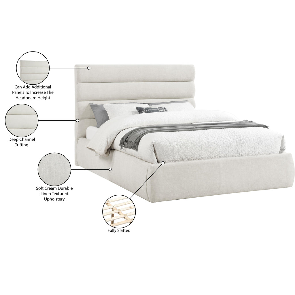 Meridian Adam Cream Linen Textured Fabric King Bed