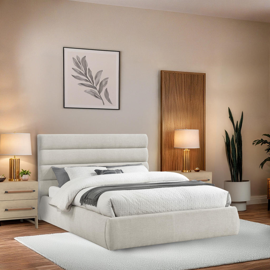 Meridian Adam Cream Boucle Fabric King Bed